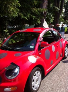 Someone spent a lot of time and creative energy getting this little  bug ready for a ride down the red carpet of Sound Beach Ave.