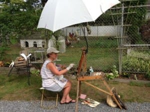 Mr. Wierdsma had a wide network of friends and enjoyed entertaining them with walks around the farm to see his exotic animals and specialty gardens, many of which are still in tact (the gardens that is). Concerned that the farm be preserved and that it’s cultural and historic aspects are a living link to the past, Mr. Wiredsma provided for the farm to be in a trust, Friends of French Farm. His wish was that the farm be used for educational programs on farmyards, preservation, culture, and organic landscapes. Judging by the many of the families and garden lovers that were enjoying plein aire painting, crafts, games, a treasure hunt, garden and architectural tours yesterday, Mr. Wierdsma’s vision has been carried forward. Many thanks to the Greenwich Historic Society and the Friends of French Farm for a wonderful afternoon.