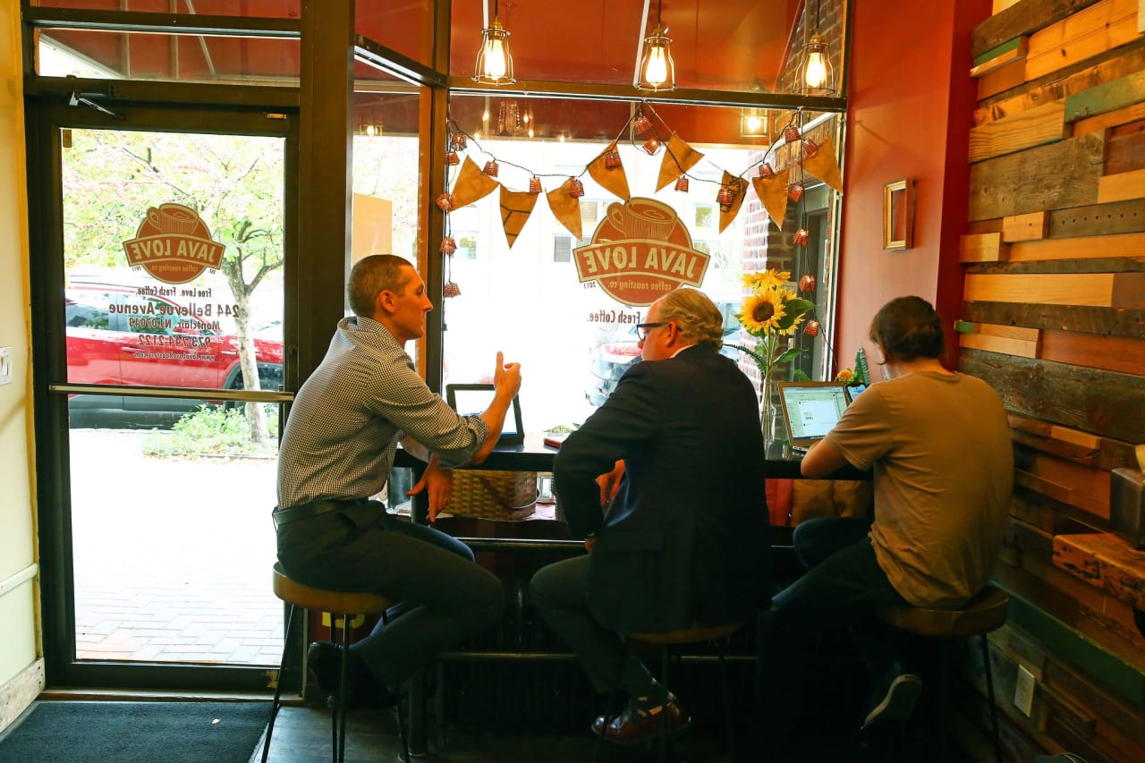 The Java Love cafe in Montclair, N.J., has helped the suburban town develop a reputation as a place where remote workers can find community.Credit...Andrea Mohin/The New York Times